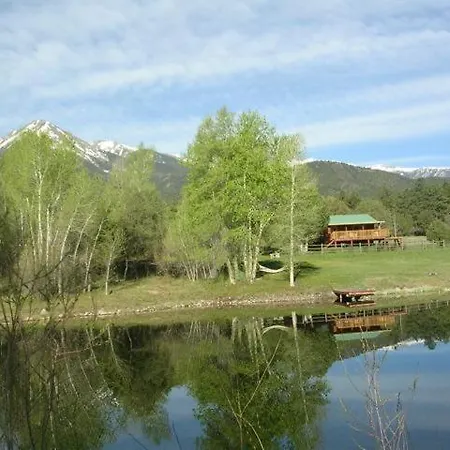 Aquí hay un patio con vistas a las montañas.